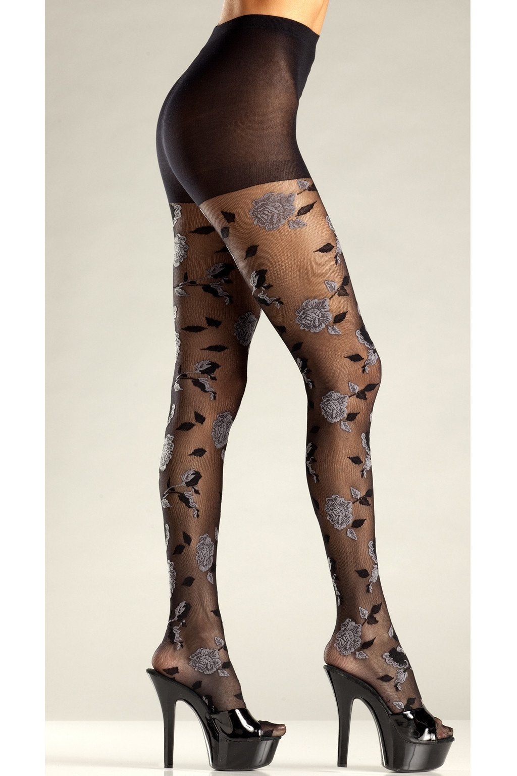 Opaque floral woven pantyhose