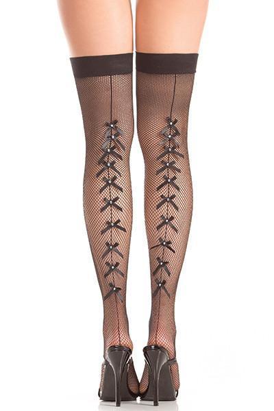 FISHNET THIGH HIGHS WITH MULTI- BOW BACKSEAM